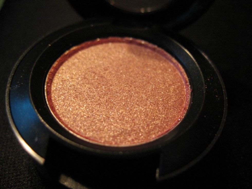 A champagne-pink shade might go well with this. Since eye-shadows are usually vibrant than a highlighter, make sure you use the product sparingly on your cheekbones. If you are using a product like Mac, I would recommend Gleam eye-shadow.