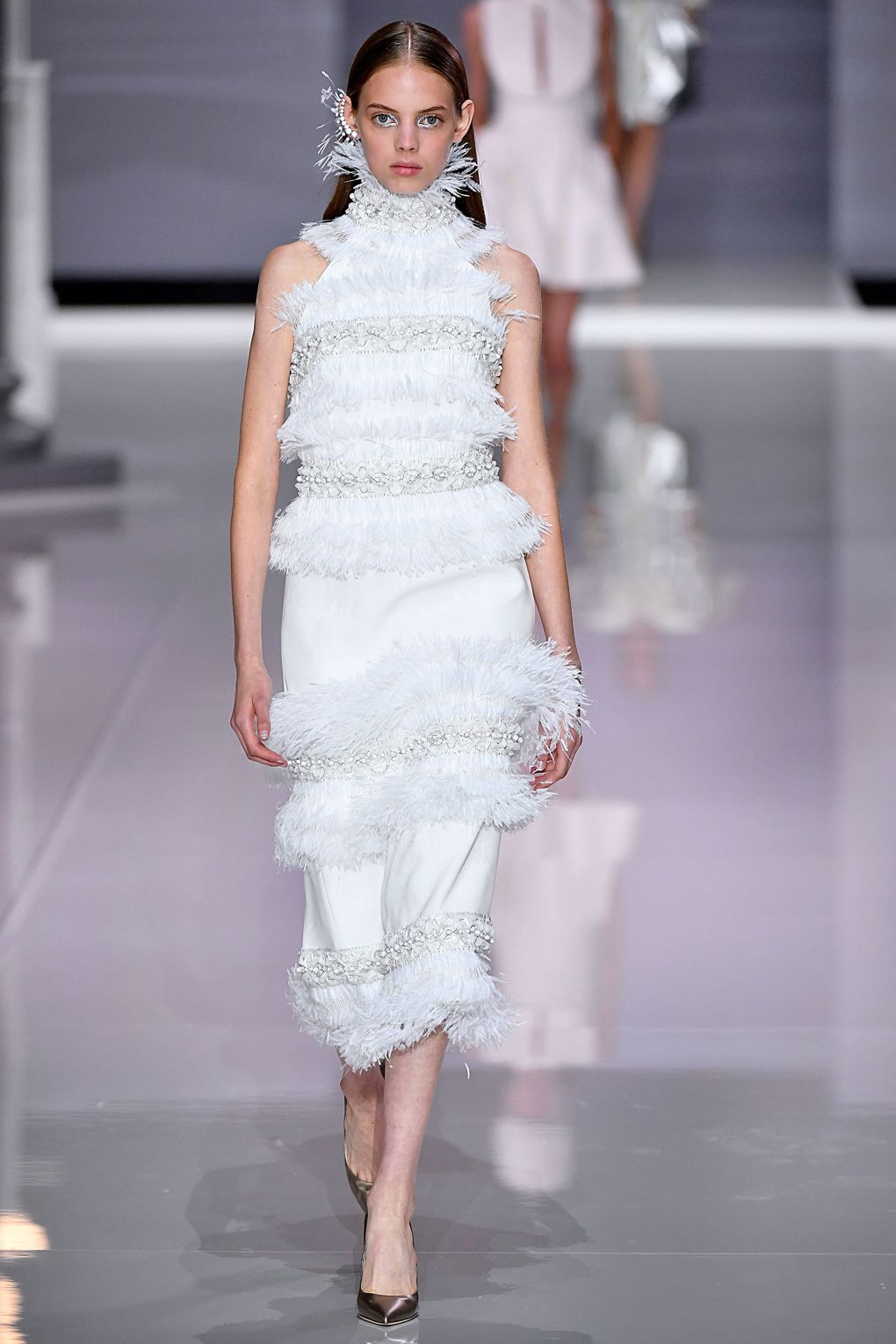 Russo proudly embellished a few ready-to-wear dresses with ostrich feathers at the neckline and the hem. She also embedded them into the ear cuffs for an adorned effect. She says they are statement pieces. And they are just there for fun and flirty femininity.