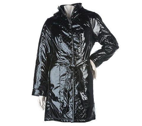 Faux Patent Leather Coat with Quilted Panel Detail