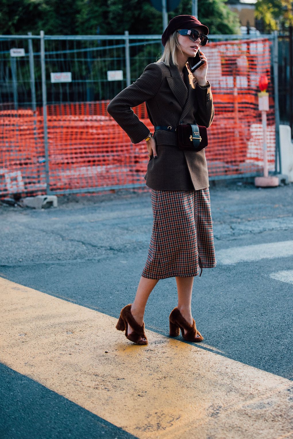 Take a “more is more” approach to accessorizing, pick up a baker boy cap, and dare to wear feathered sandals by day. Forget the catwalks, the real style action went down on the street at Milan Fashion Week.
