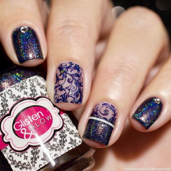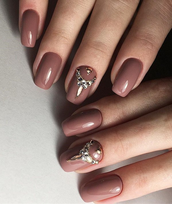 The shine and rhinestones enriches everything so the manicure. If you are indecisive and do not know which pattern to draw on your nails, simply sprinkle the jewels and it will be quite enough.