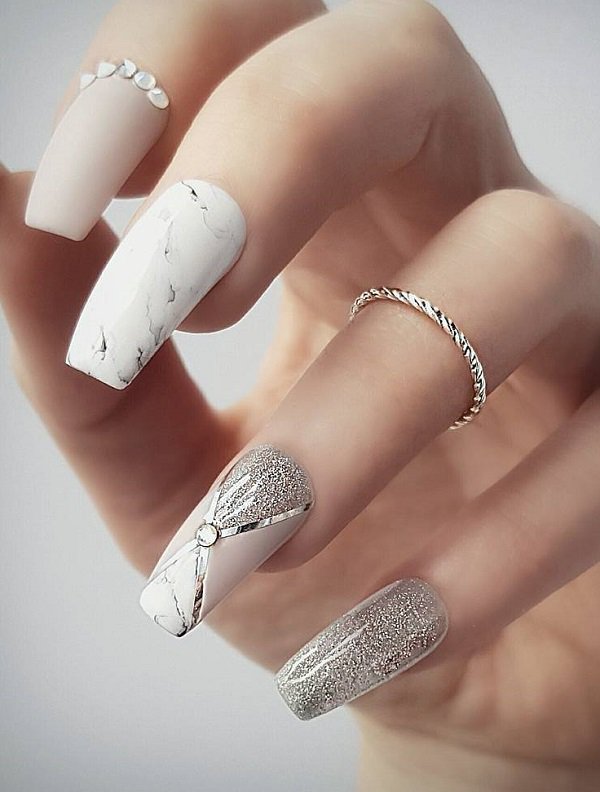 Manicure with marble effect has gained many fans among the members of the more beautiful sex.