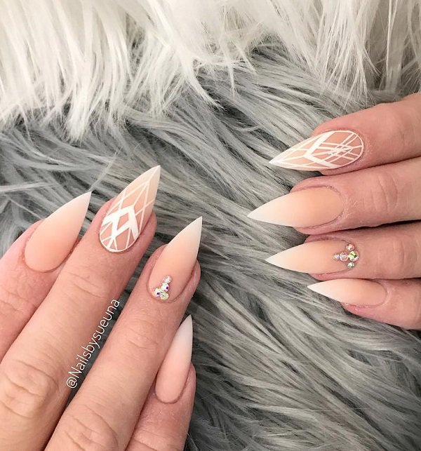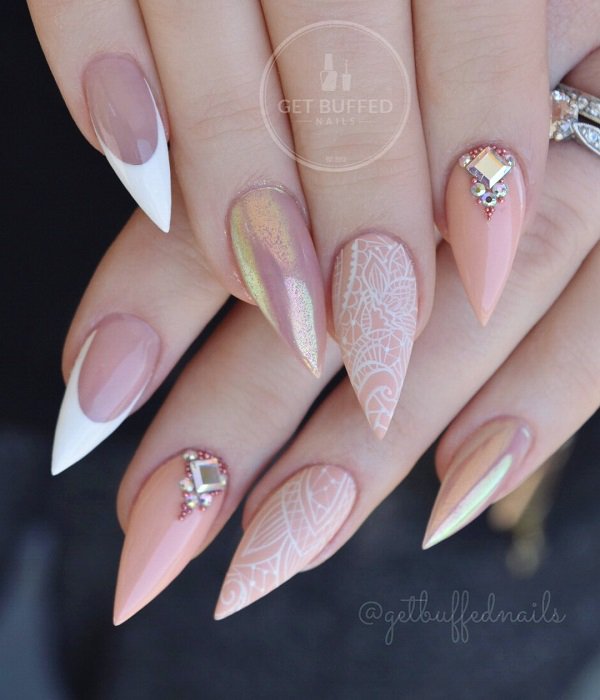 Almond shaped nails are very sensual and provocative. Combine different styles in painting, freely combine classic French manicure with metallic shades, zircons and Indian patterns.