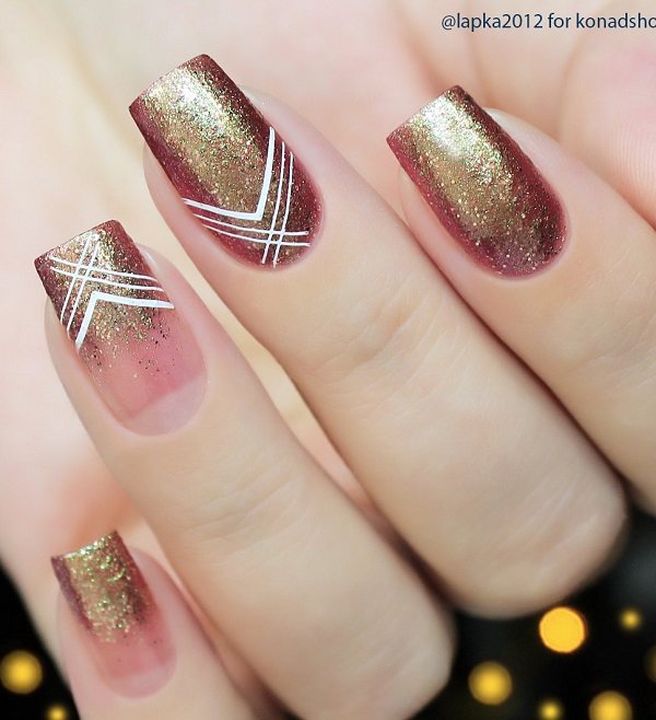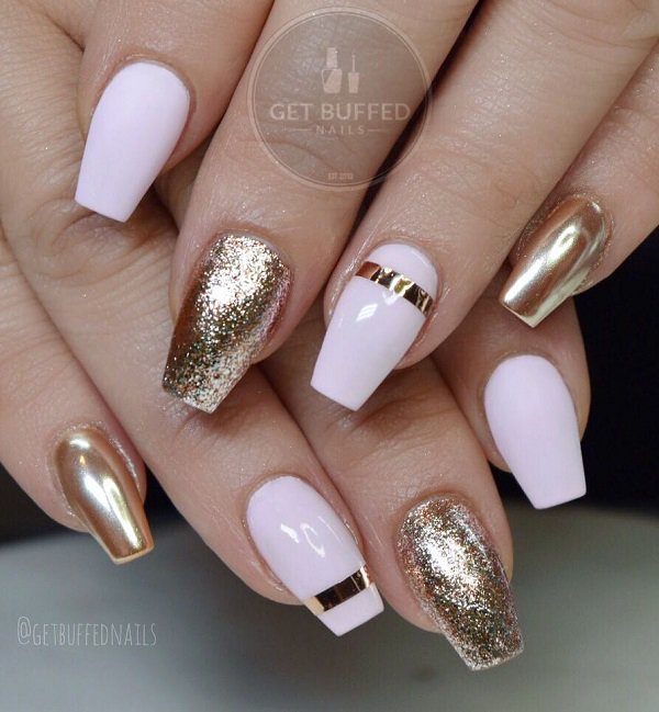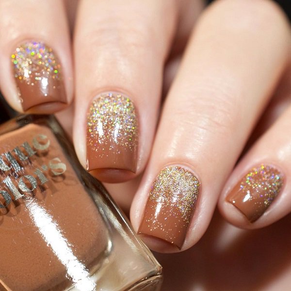 Golden nails are a modern solution for a luxurious manicure. This color is synonym for wealth and luxury. It leaves no one indifferent. The golden color looks very nice in autumn and winter months, but be free to take it whenever you want to look elegant.