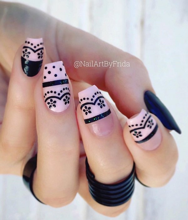 The dark lines and geometric shapes made this slightly boring manicure more effective.