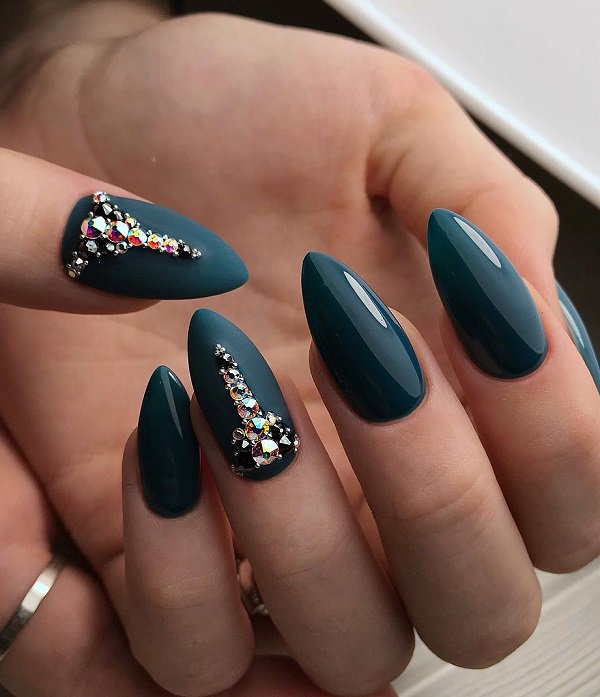 Extravagant green with extravagant rhinestones. For the best effect, combine matte and glossy shades.