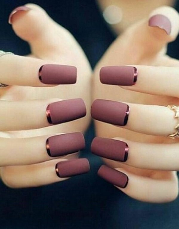 In order not to be a monotone, this manicure is complemented with the same color just glossy at the base of the nail.