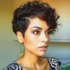This short curly style has been expertly tapered to created a side-parted look with bangs that sweep across the forehead. Give this look a try if you’re trying to minimize a large forehead or avoid a curly cut that gives your head a perfectly round silhouette.
