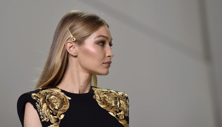 So simple but so smart. We love how the Versace-logoed hair slide was seen positioned above Gigi’s ears at Versace in Milan.