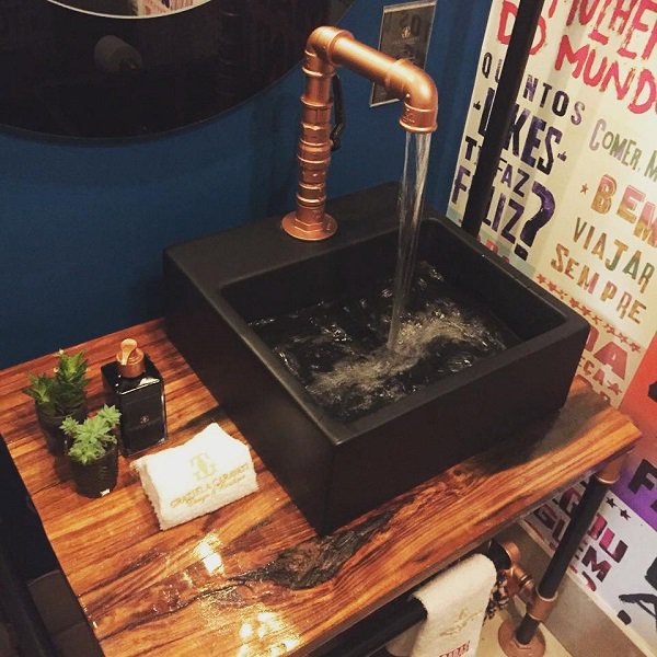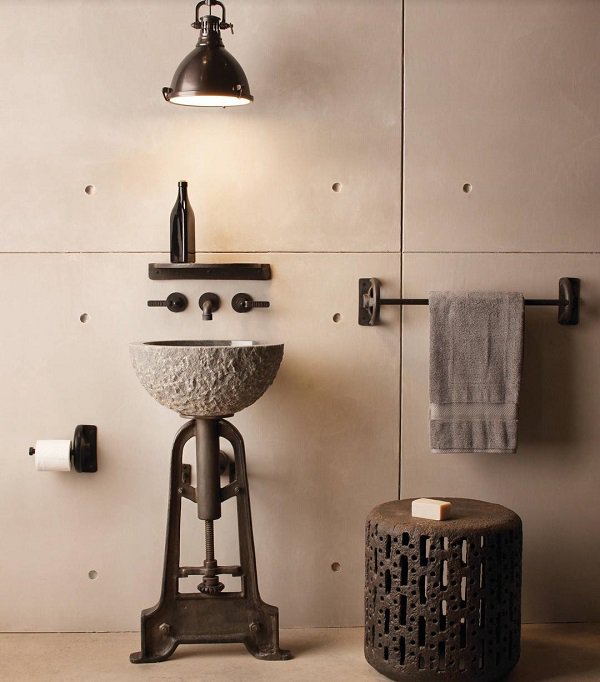 Bald installations, bare walls and untreated wood that look very useful and old are essential in this design.