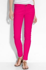 Skinny jeans are always makes you look thinner and with a bright color like fuchsia will make it extra ordinary.